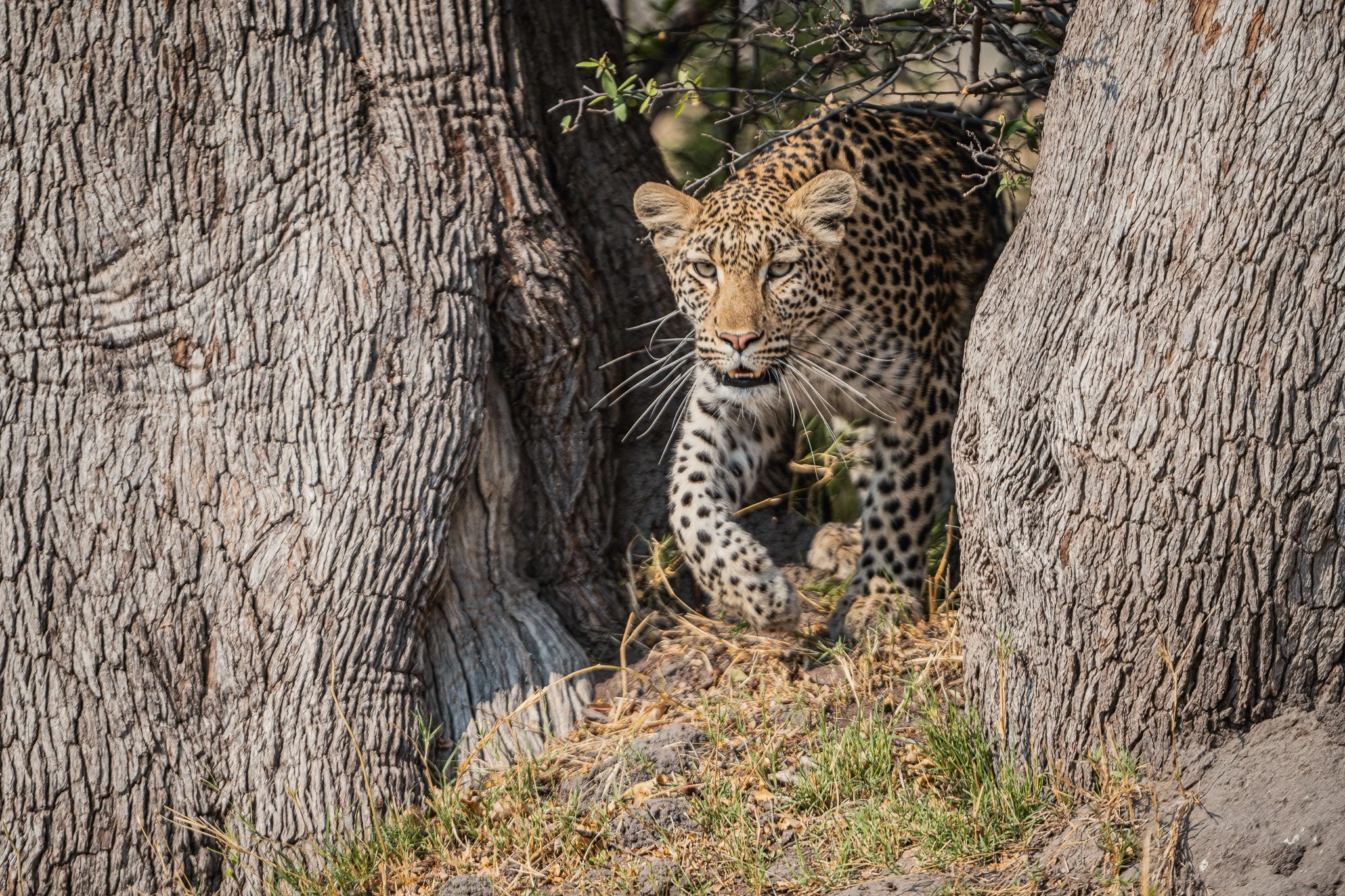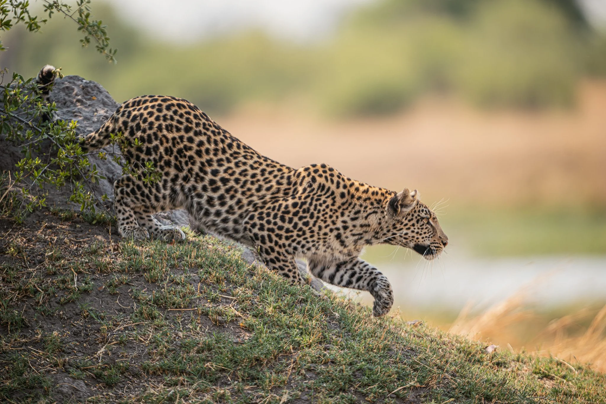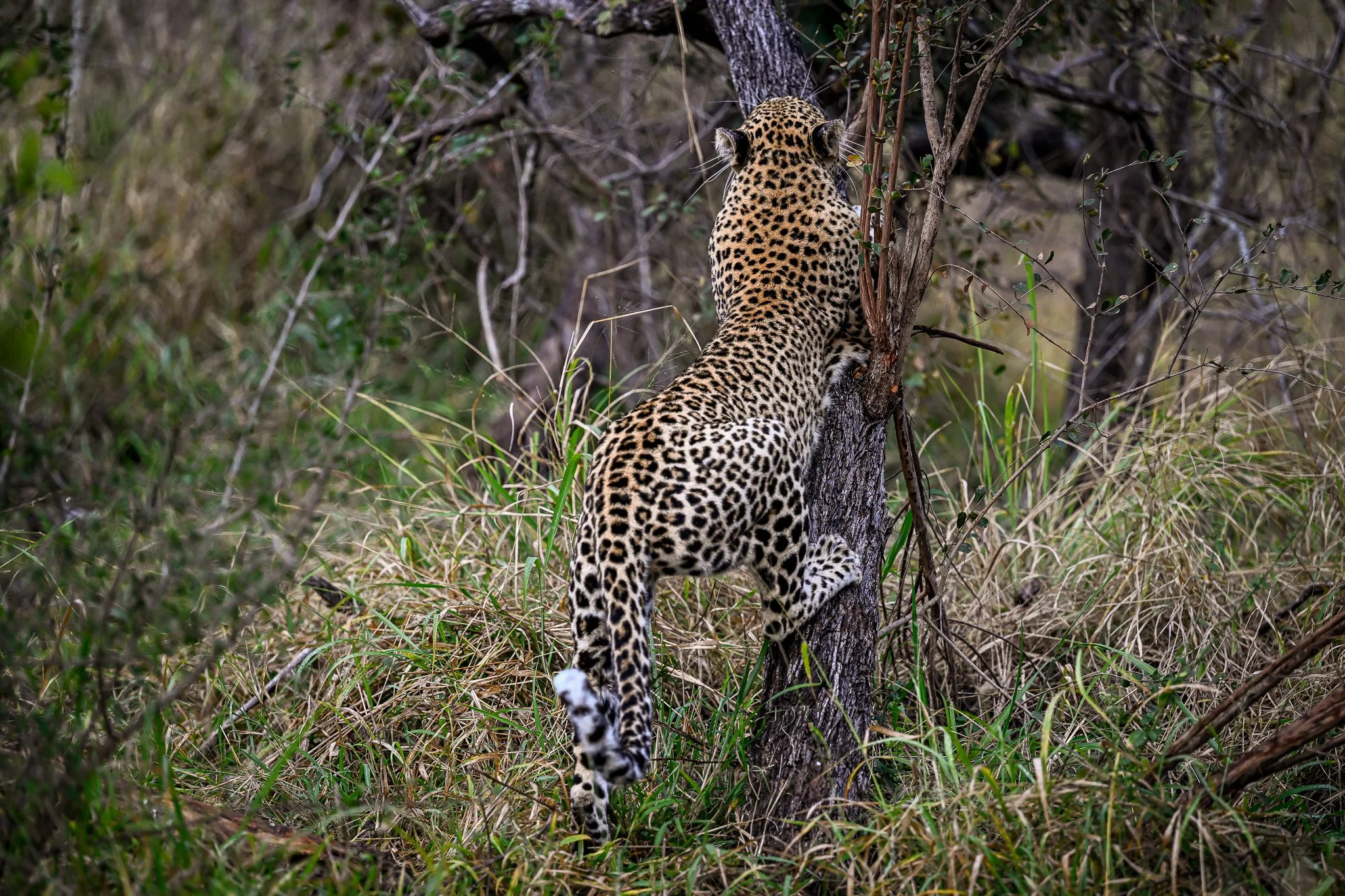 She knows to stay low and hidden — the camouflage coat of a leopard allows them to go unnoticed when they make use of cover. She utilizes bushes, tall grasses, and will even climb trees in an effort to shadow her prey.